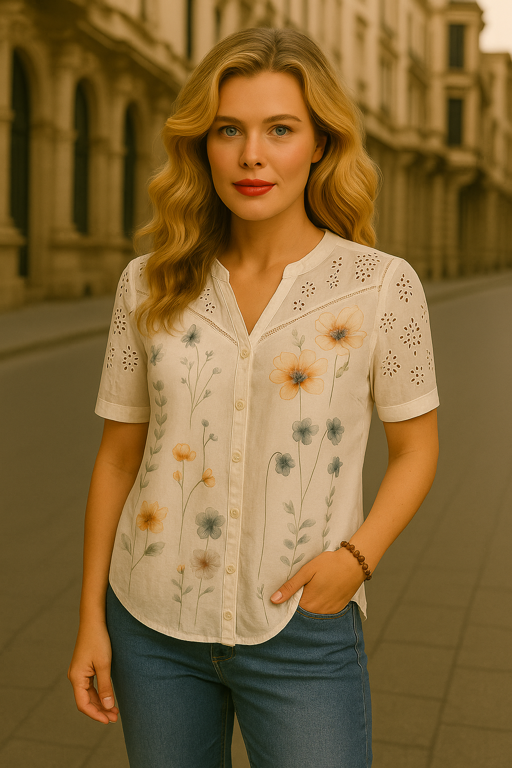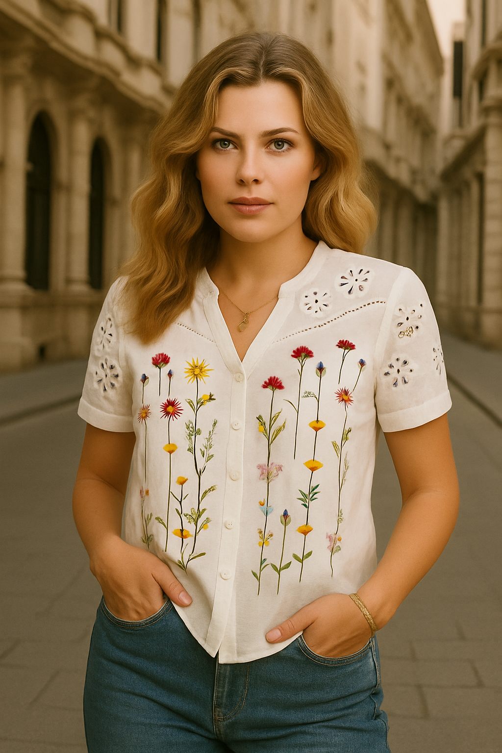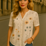 Refrescante, delicada y con alma de primavera, la Camisa Botánica es una joya del armario femenino. Su bordado floral en tonos vibrantes y los detalles calados la convierten en una prenda romántica y atemporal.