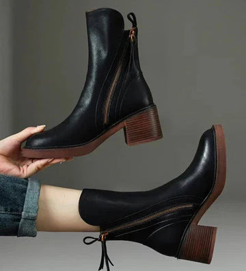 VALORINE™ | BOTAS DE CUERO NEGRAS CON TACÓN CÓMODO, ELEGANTES Y ATEMPORALES