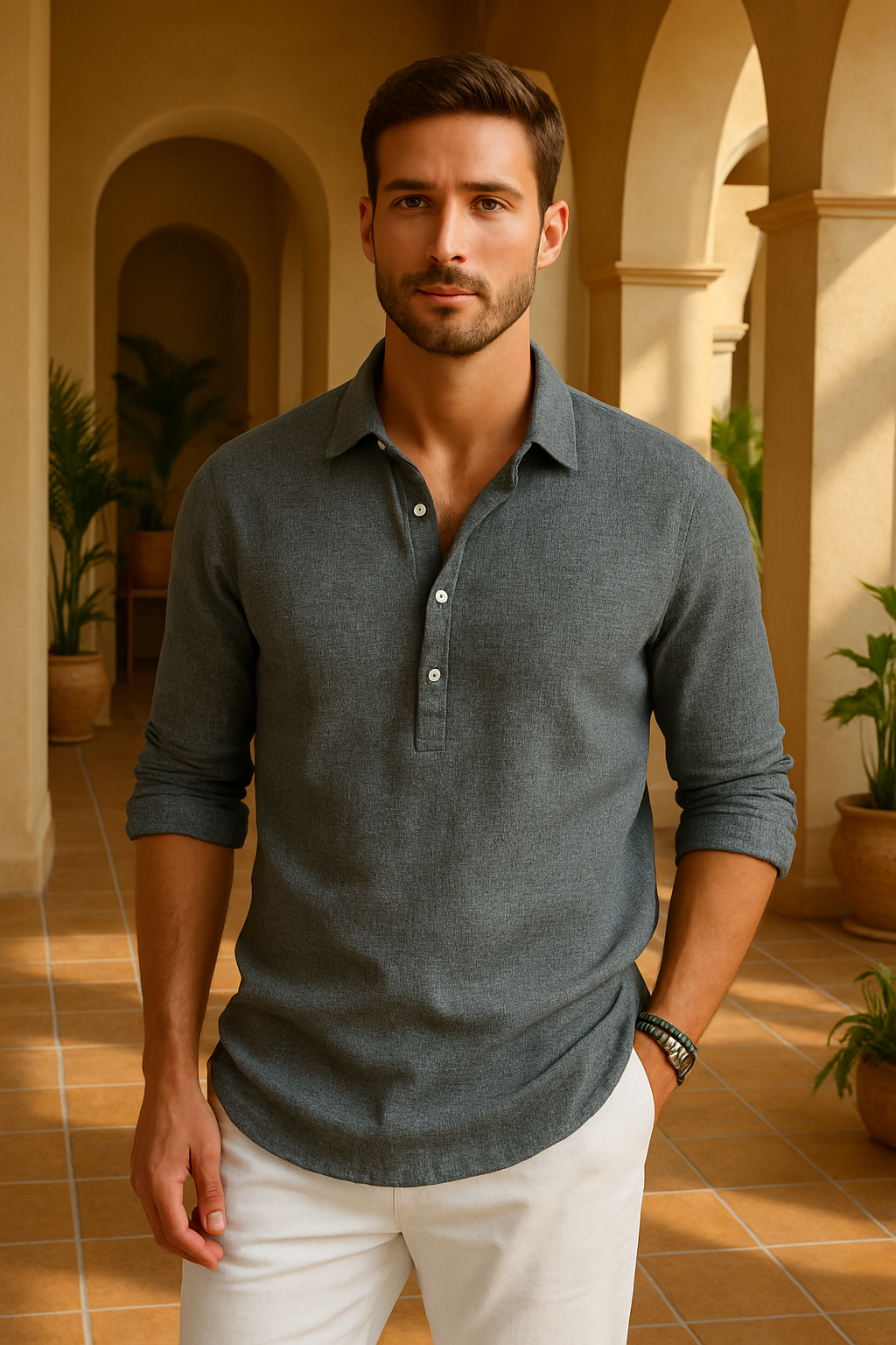 La Camisa Casual Riviera es el equilibrio perfecto entre estilo relajado y elegancia discreta. Confeccionada en un tejido ligero y transpirable, esta prenda es ideal para días soleados, escapadas de fin de semana o una cena informal con amigos. Su diseño con cuello abierto y botones parciales añade un toque moderno sin perder la esencia clásica.