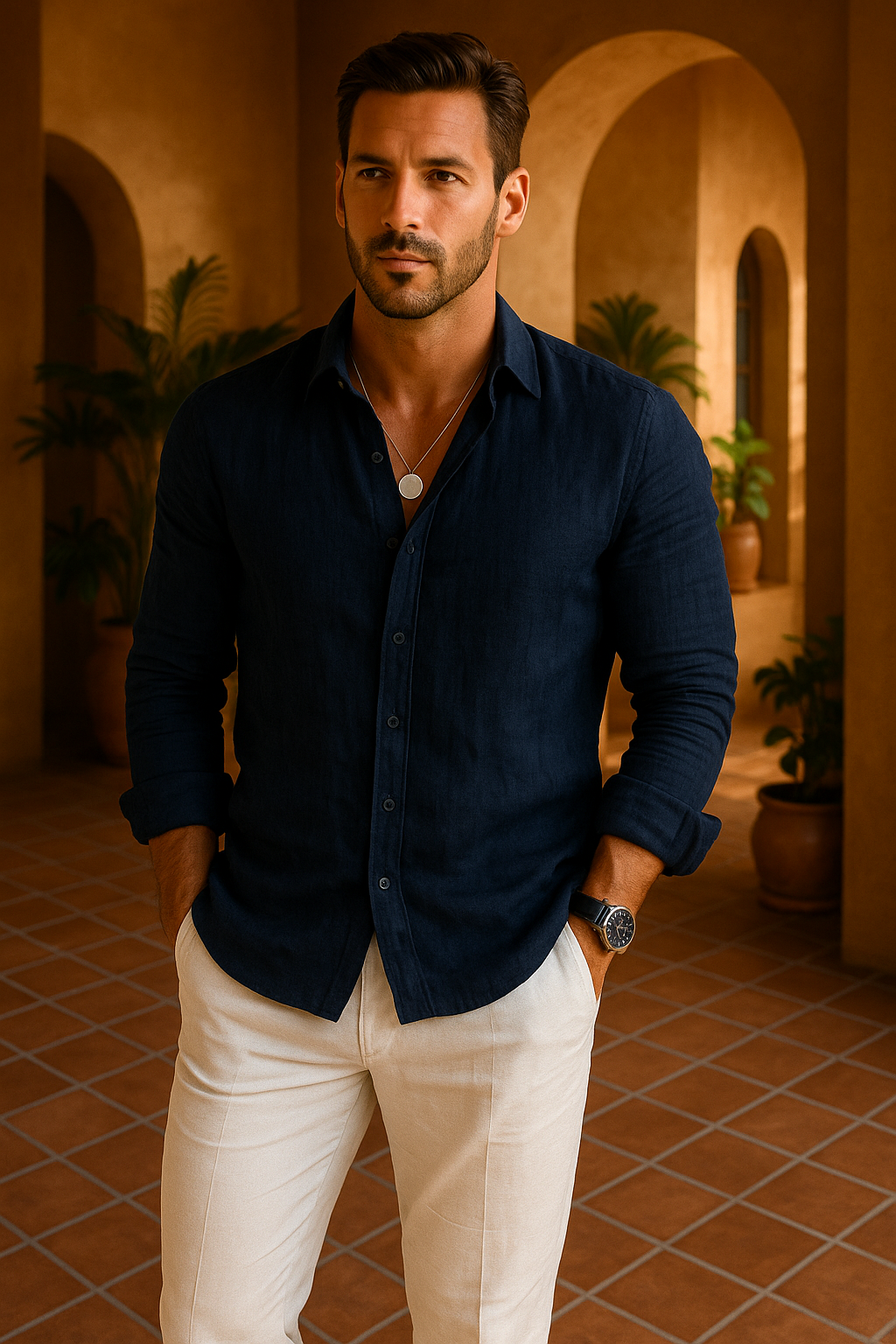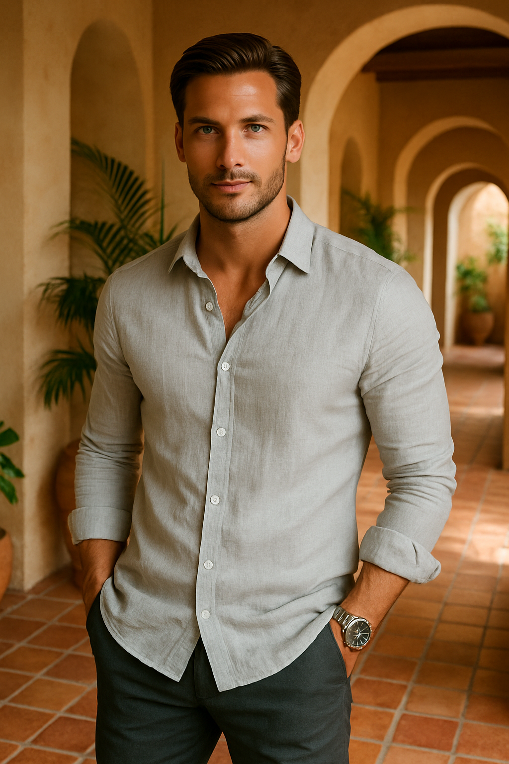 Con un corte ajustado y una caída fluida, esta camisa aporta de inmediato un aire elegante y desenfadado.