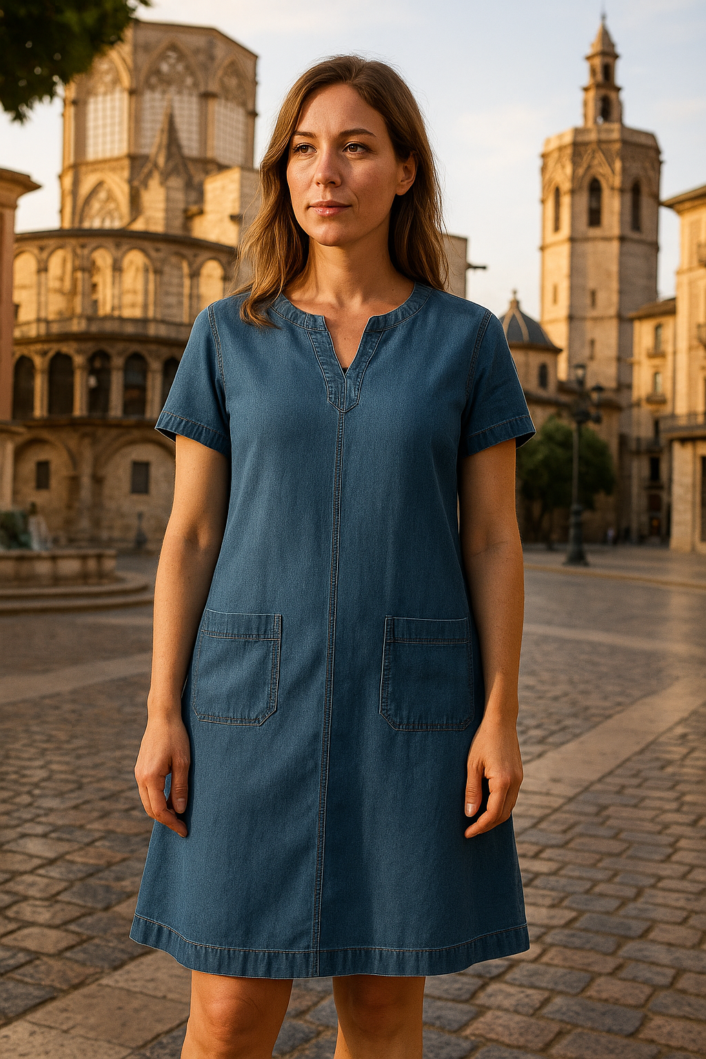 Julia | Vestido de Mezclilla Suave con Bolsillos Frontales