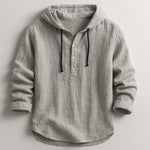 La textura ligera y transpirable del lino se siente agradable sobre la piel y es ideal para todas las estaciones, mientras que la capucha ajustable añade un toque moderno y funcional. Perfecta para un estilo tanto refinado como casual, adecuada para días activos y noches relajadas.